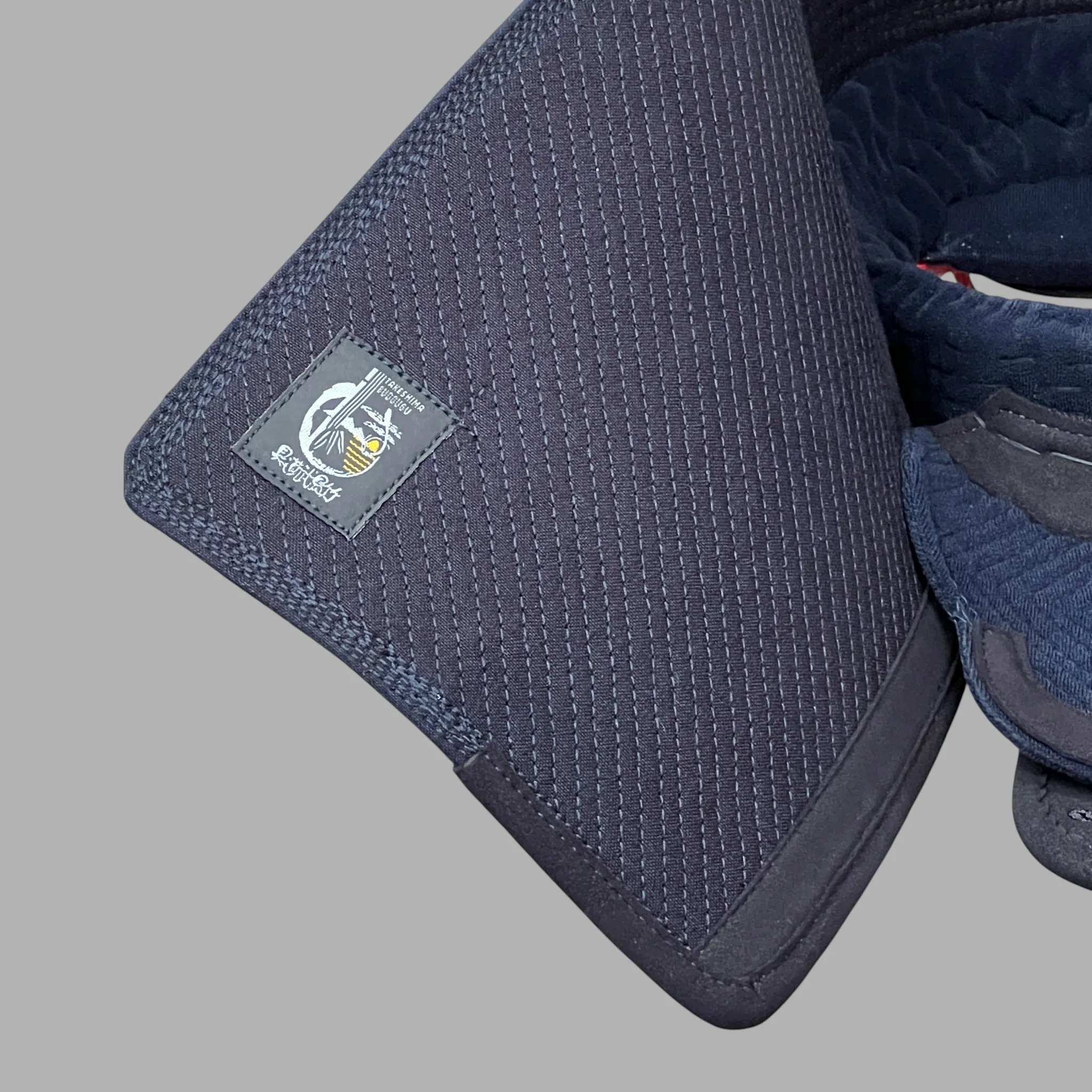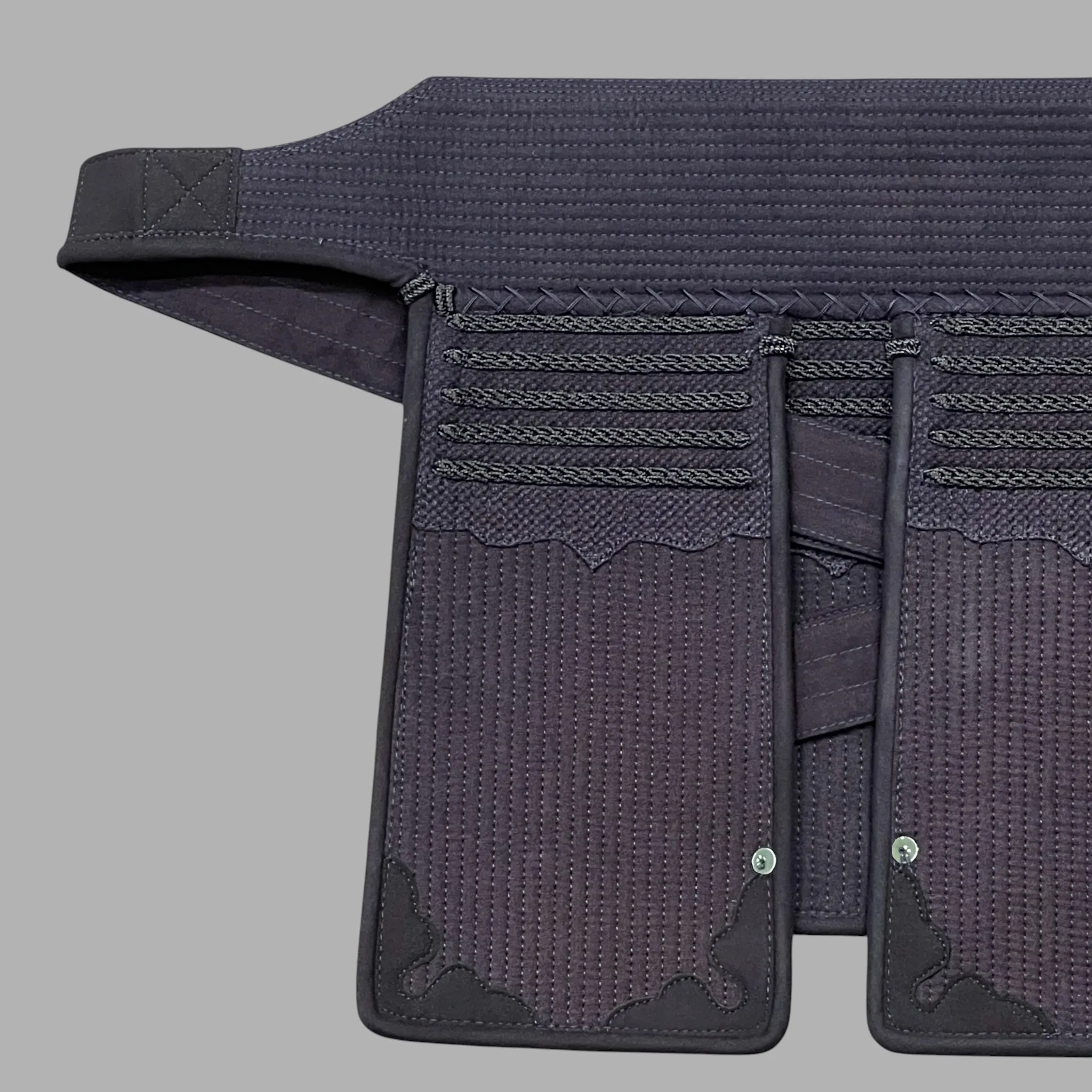 Clean and structured 5mm straight stitching, with decorative five-dan embellishment hand-stitched by artisans. These decorations allow the Tare to move fluidly with your lower body while offering protection. Below the five-dan design, a curved “”kumo”” (cloud) pattern adds an elegant aesthetic.