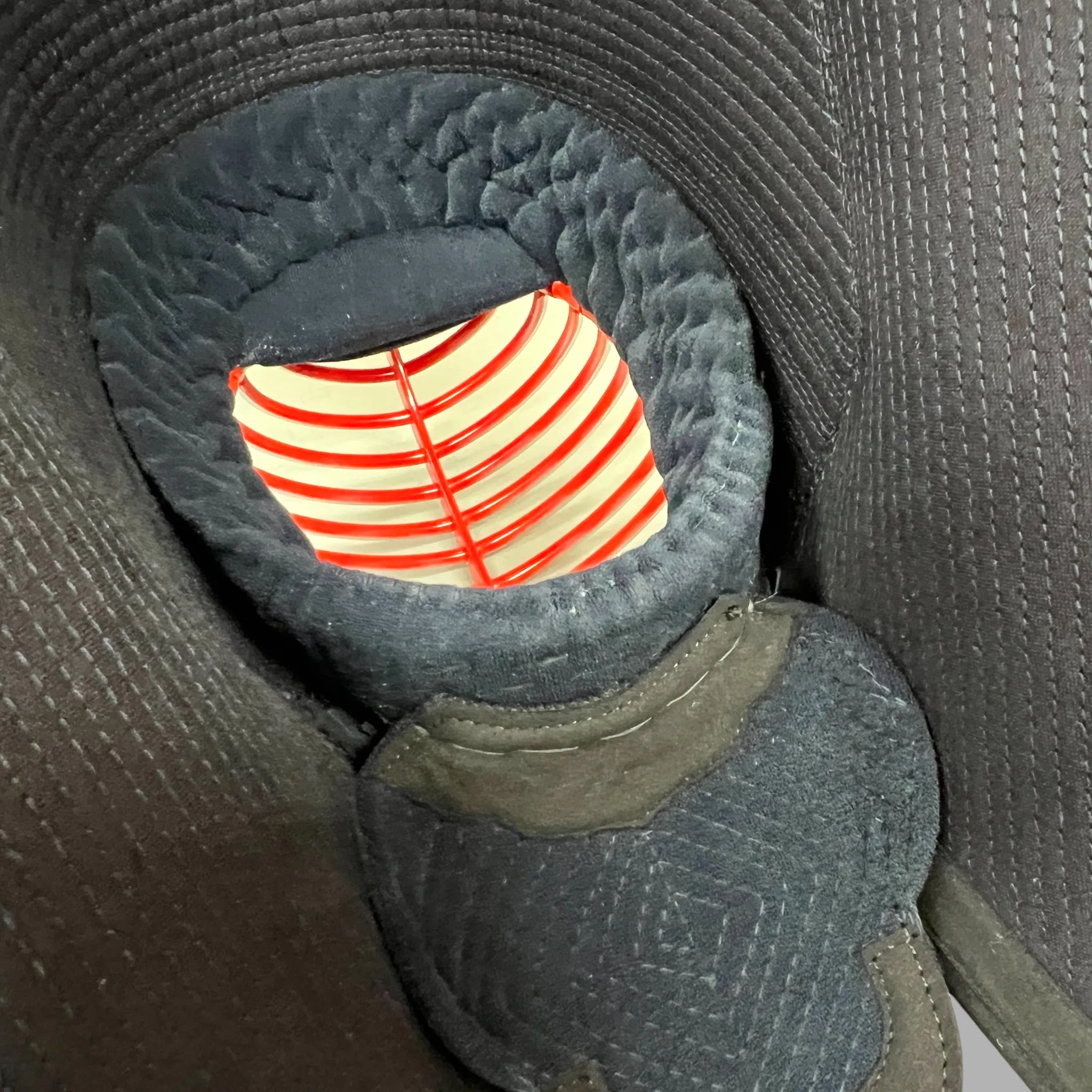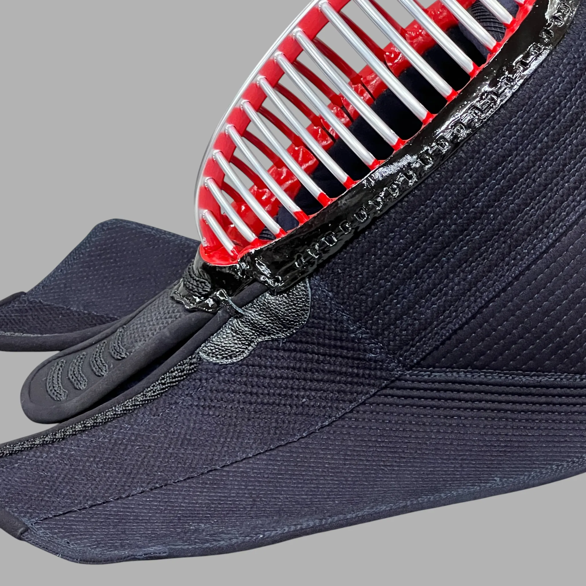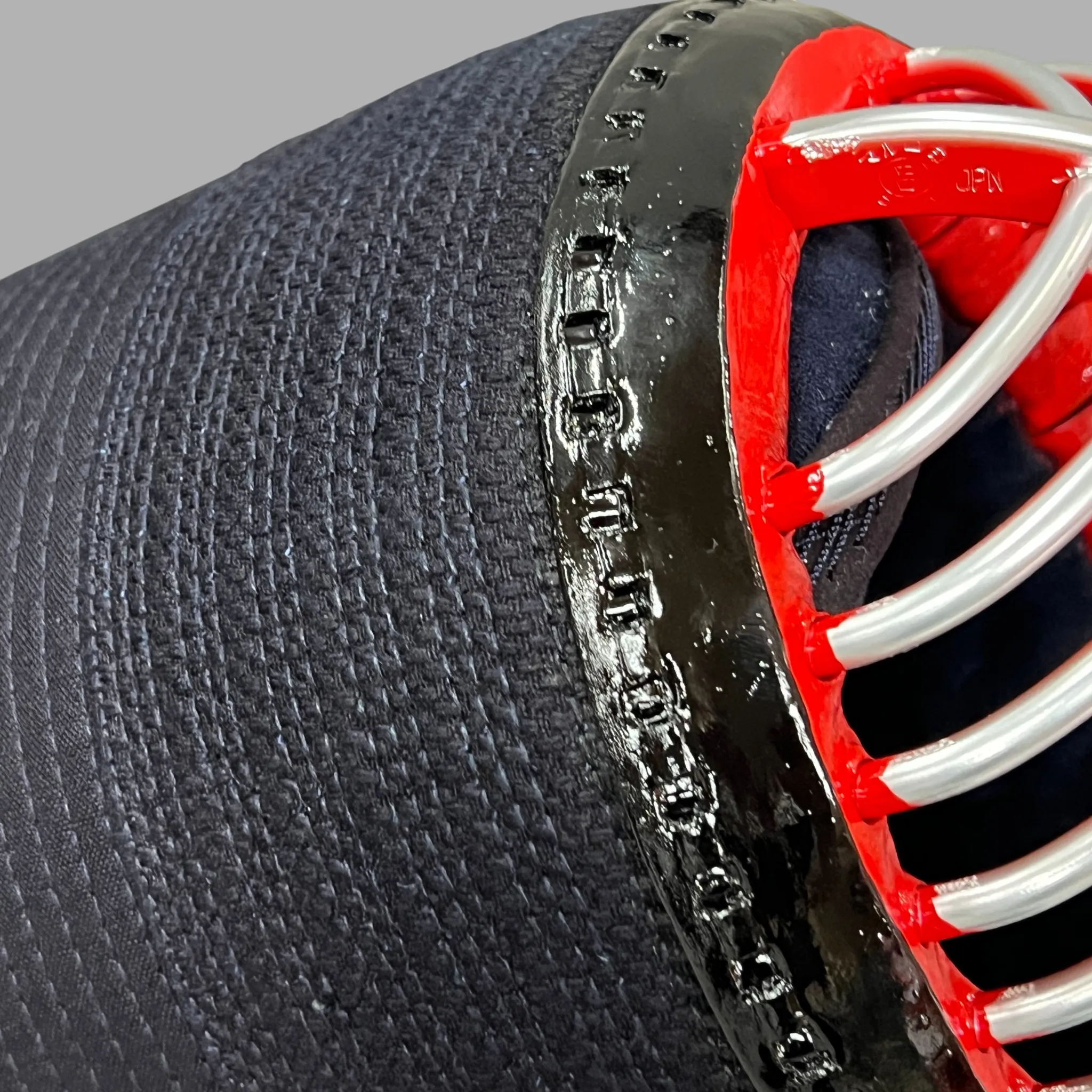 The top of the Men is crafted using our original “Bukotsu-zashi” stitching, offering a slightly thicker design to better absorb impact during strikes. The rest of the Men is machine-stitched at 5mm width, with diagonal stitching on the Men-dare (the flaps beneath the ear). This angled stitching reduces interference when lifting the shinai.