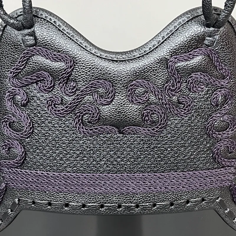 Inside the cloud pattern, diagonal stitching is hand-applied by skilled craftsmen using dark navy thread.