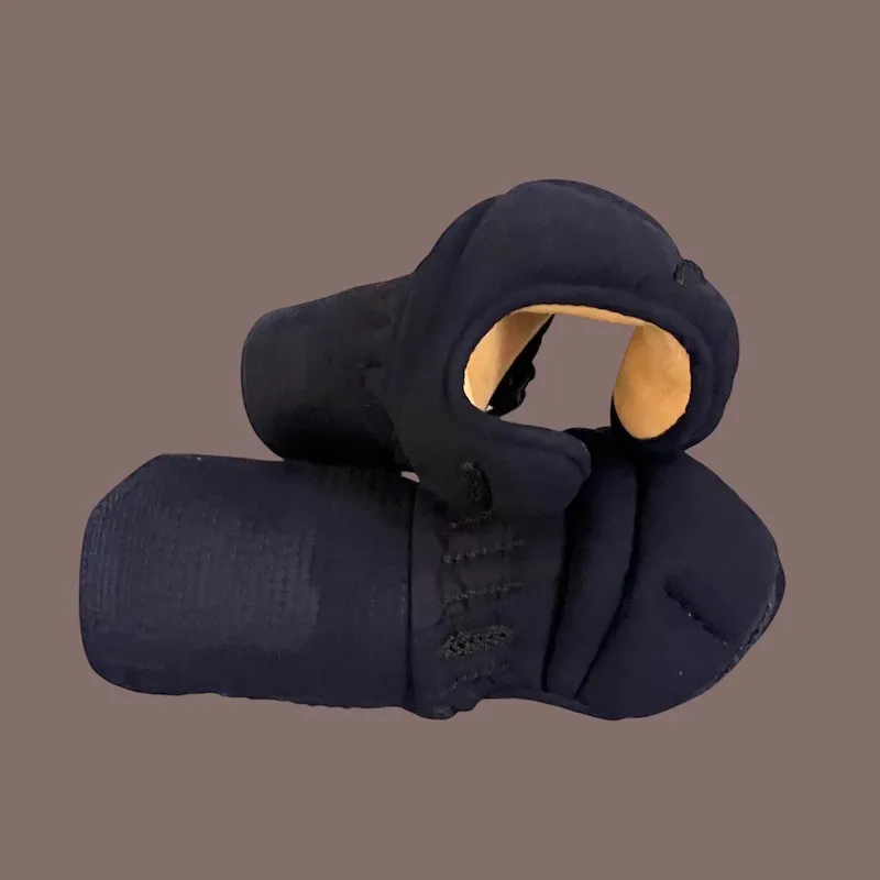Kote (Gloves): Cotton, indigo-dyed cotton fabric, and synthetic leather (navy and brown).