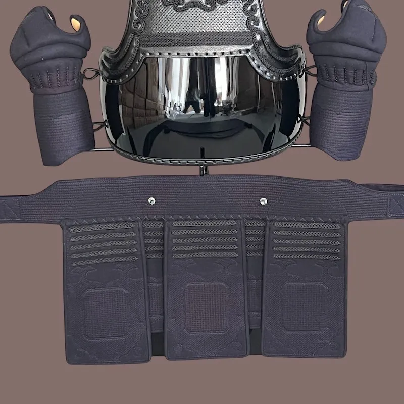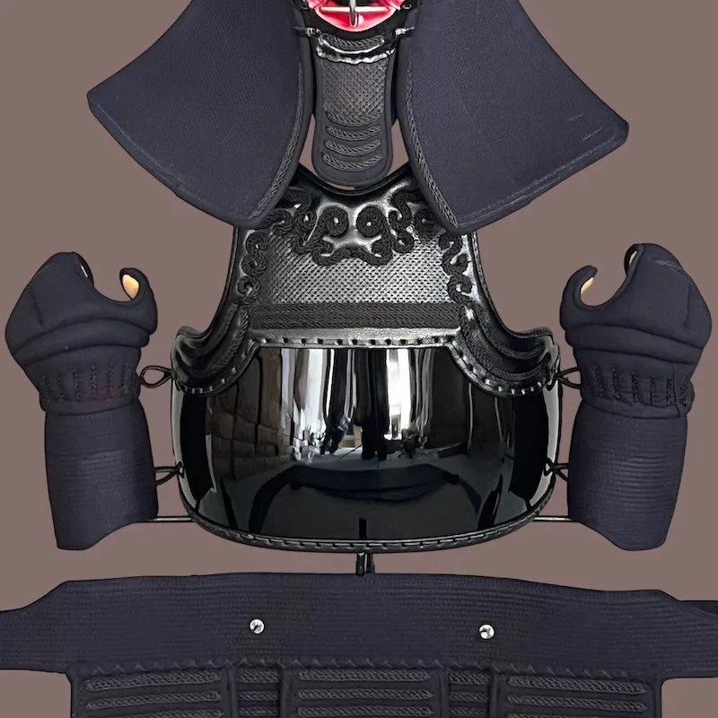 A standard-type Kendo Bogu set that includes Men (helmet), Do (chest protector), Kote (gloves), and Tare (waist protector).