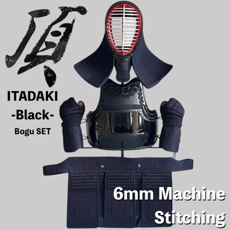 ITADAKI-BLACK Kendo Bogu Set 6mm Machine-Stitched Orizashi Fabric Standard Type