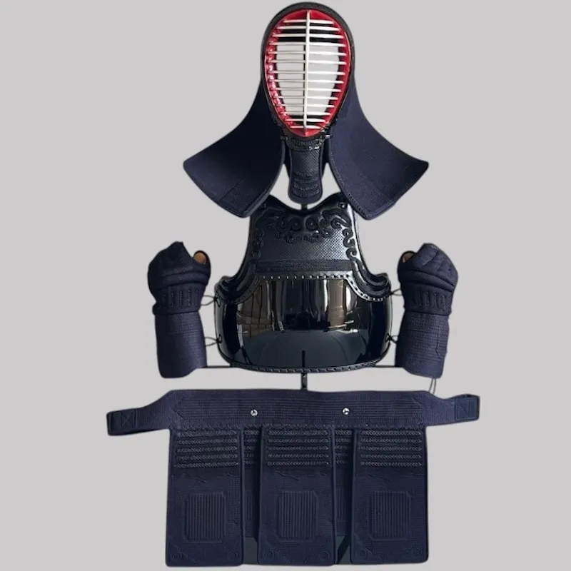 A standard-type Kendo Bogu set that includes Men (helmet), Do (chest protector), Kote (gloves), and Tare (waist protector).