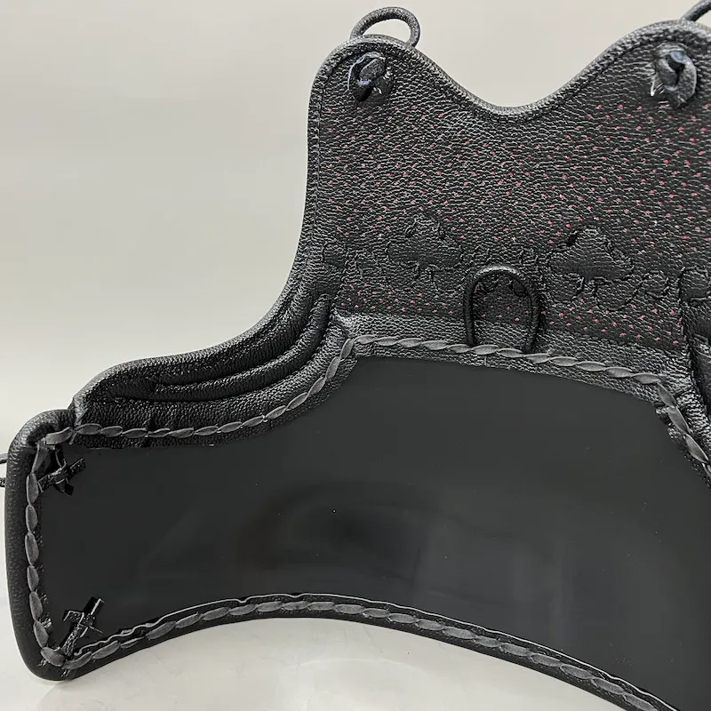 The Premium Genuine Kurozan Cowhide Leather used for the chest portion is created by dyeing natural cowhide black and applying lacquer over the surface.
